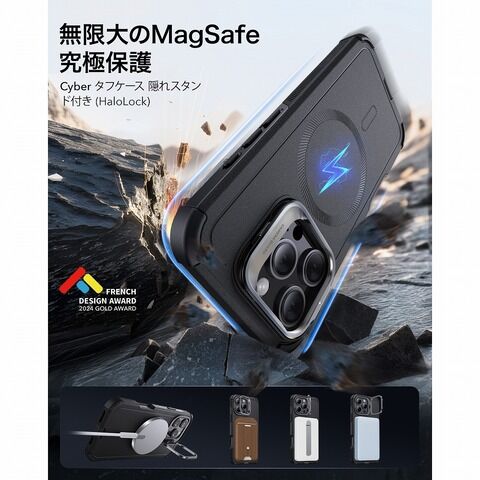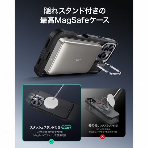 ESR iPhone 16 Pro用 MagSafe対応 Cyberタフケース隠れスタンド付きケース(Black) Cyber Tough Case with Stash Stand (HaloLock) ESR655 【返品種別A】