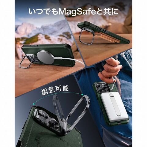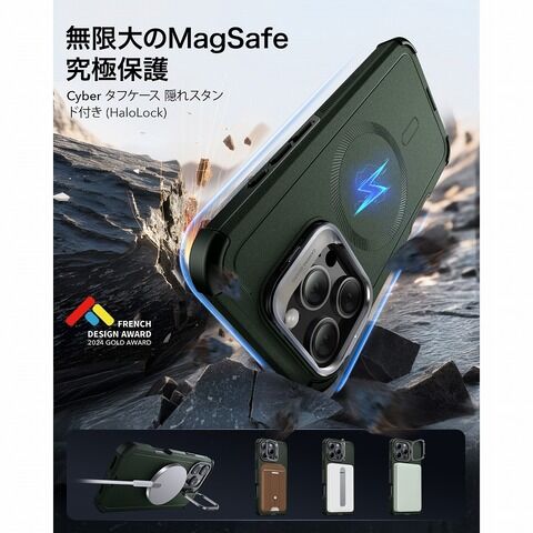 ESR iPhone 16 Pro Max用 MagSafe対応 究極保護 Cyberタフケース隠れスタンド付きケース(ブラック) Cyber Tough Case with Stash Stand (HaloLock) ESR658 【返品種別A】