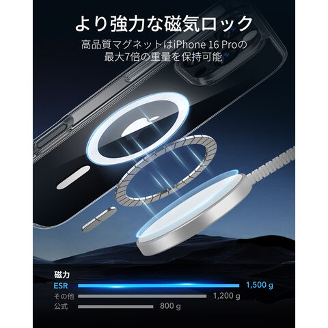 1500gの保持力を持つ強力な内蔵マグネットは、より速く、より簡単な瞬間吸着ワイヤレス充電を可能にし、あらゆるMagSafeアクセサリーに安全なロックを提供します。