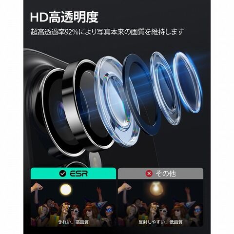 ESR iPhone 16/16 Plus用 強化ガラス製レンズフィルム(ブラック) Armorite Camera Lens Protector ESR674 【返品種別A】