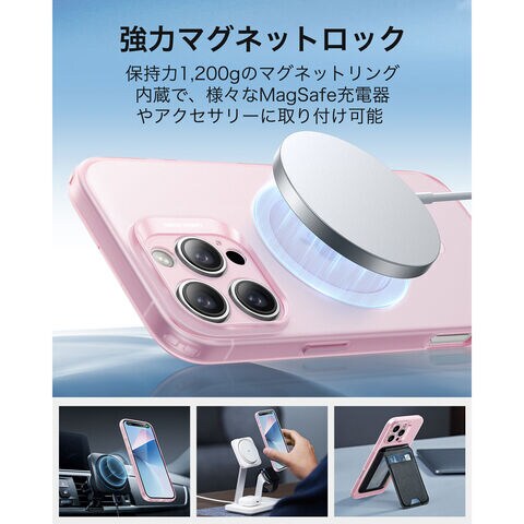 1200gの保持力を持つ強力な磁気リングは、MagSafeに対応しており、より速く、より簡単な瞬間吸着ワイヤレス充電および、あらゆるMagSafeアクセサリーへ磁気吸着を可能にします。このiphone 16 Pro Maxケースは、iphone 16 Pro Max magsafeアクセサリーを使用する方に最適です。