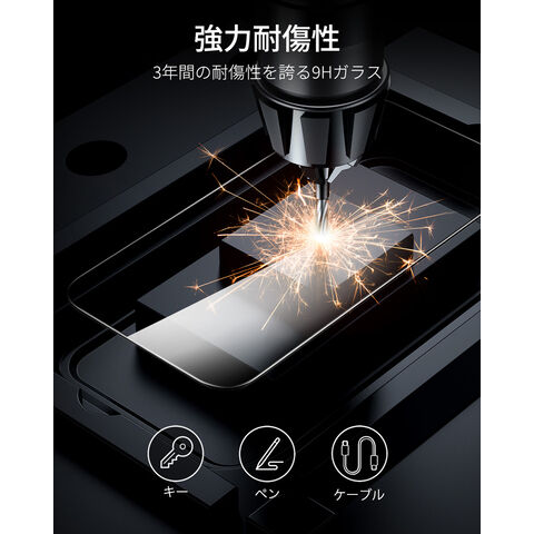 最大15kgの力に耐久する超強靭な強化ガラスは、落下、衝撃、傷から画面を強力に保護します。