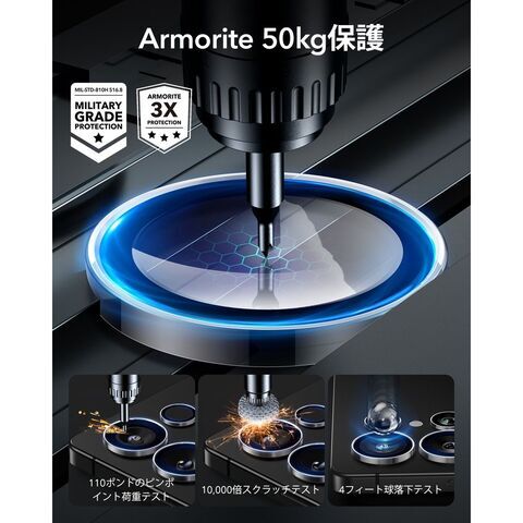 米軍企画の強力な耐久性の独立型設計の強化ガラスプロテクター。気泡が入りにくい取り付けフレームと簡単に剥がせる取り外し器具付き。