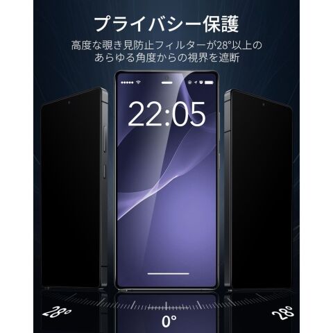 高度なプライバシーフィルターにより、28°全方位 覗き見防止ができて通勤やお支払いなどに大変役立ちます。