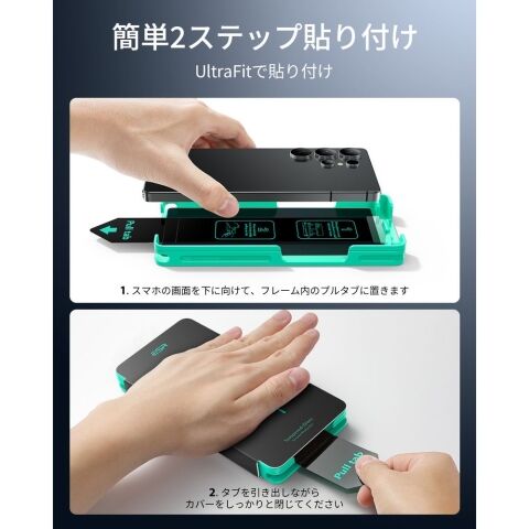 • パッケージ内容:のぞき見防止ガラス保護フィルム、自動ホコリ除去UltraFitトレイ、クリーニングキット、マニュアル