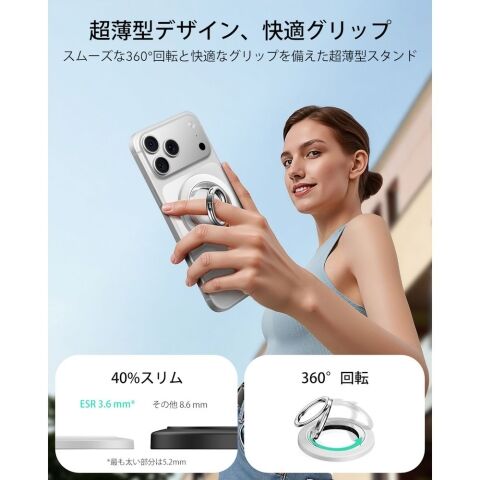 ESR MagSafe対応スマホリングホルダー マグネットリングスタンド360(White) 2K6180261 【返品種別A】