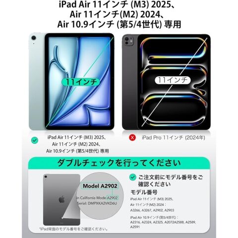 - 対応機種:iPad Air 11インチ (M3/M2、2025/2024モデル)、iPad Air 10.9インチ (第5/4世代、2022/2020モデル)