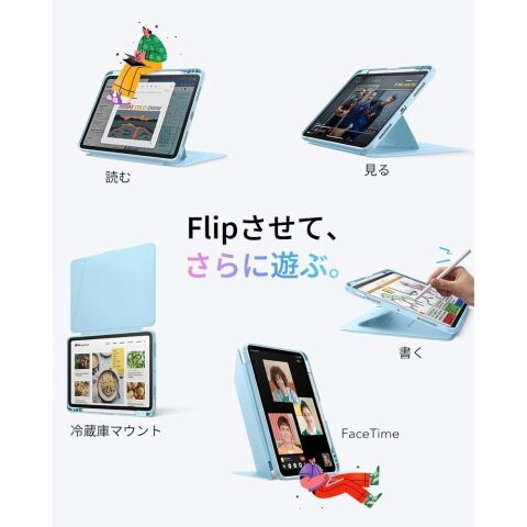 ESR iPad Air 4/5/Air 11 (2025/2024)用 Flipマグネットケース Pencilホルダー(Sky Blue) 1B21400903 【返品種別A】