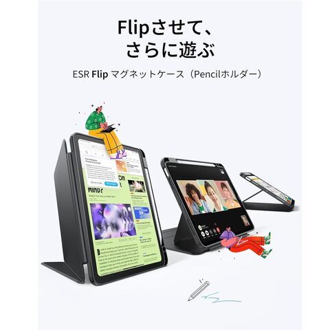 ESR Flipマグネットケース ペンシルホルダー搭載 iPad Air 13インチ M3/M2(2025/2024)対応 (Black) 1B21500103 【返品種別A】