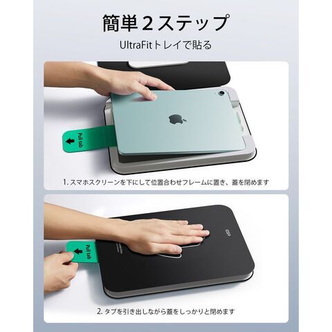 付属しているUltraFitトレイを使用することで、正確な位置決め・ホコリ自動除去で簡単操作で気泡混入しない保護フィルムの貼り付けが行えます。