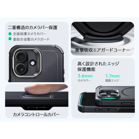 無限大のMagSafe究極保護、隠れスタンド、カメラコントロール付き