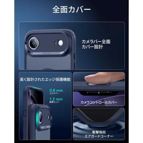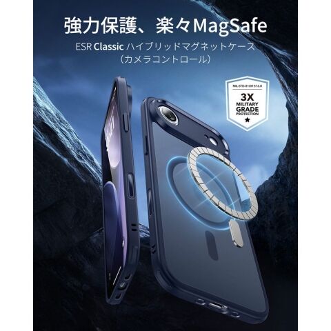 ESR iPhone Air用 MagSafe対応 カメラコントロール付きClassicハイブリッドマグネットケース(Frosted Blue) Classic Hybrid Magnetic Case (Camera Control) 1A86200401 【返品種別A】