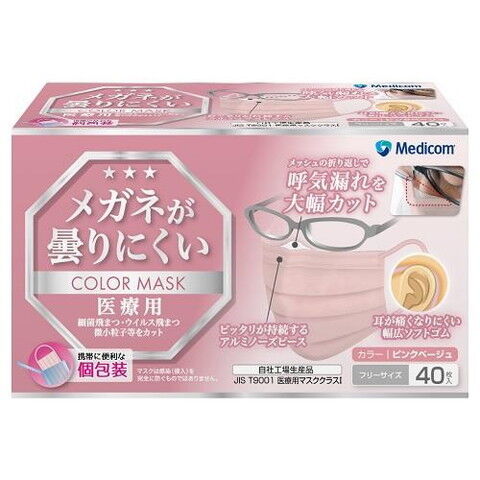メディコム 眼鏡が曇りにくいカラーマスク ピンクベージュ 40枚 メガネクモリニクイカラ-マスクPKBE 【返品種別A】