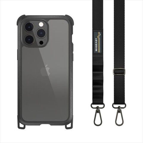 MagEasy iPhone15 Pro Max(6.7inch/3眼)用 耐衝撃ケース スマホショルダーストラップ付 米軍MIL規格クリア Odyssey+(レザーブラック) ME_IOGCSPTSL_LE 【返品種別A】
