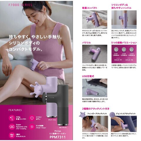 フィリップス ハンディマッサージャー(パープル) Philips ミニ筋膜リリースガン PPM7311PP 【返品種別A】