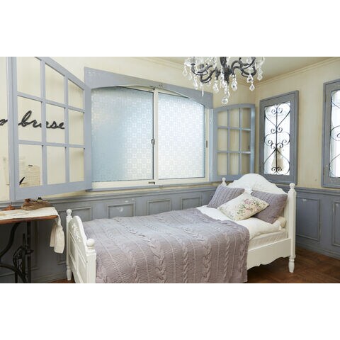 アール マドピタシート すりガラス対応 ブルーレース柄 サイズ(約):90×180cm 全面粘着 冷暖房効果アップ&結露抑制 H-154-A(ア-ル) 【返品種別A】