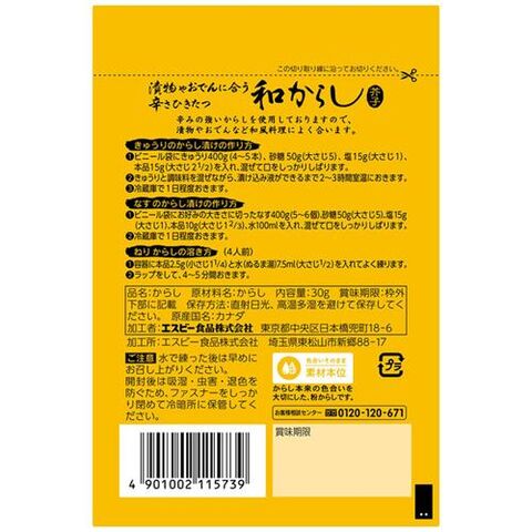 エスビー食品 漬物やおでんに合う和からし 30g S&B カラサヒキタツ ワカラシ 30 【返品種別B】