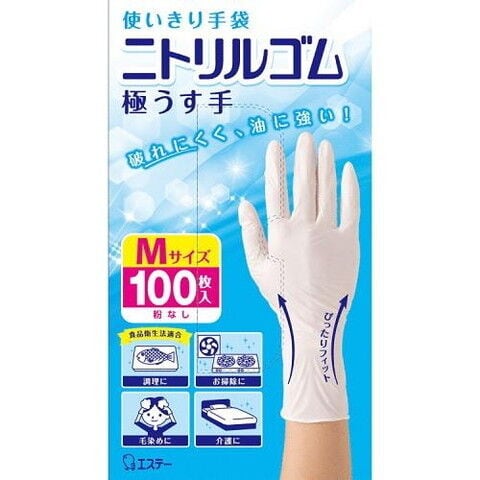 エステー 使いきり手袋ニトリルゴム極うす手M ホワイト 100枚 ツカイキリニトリルゴムゴクウM100 【返品種別A】