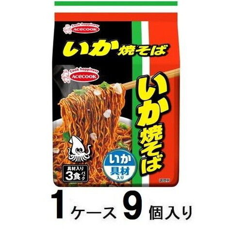 エースコック (袋)いか焼そば 具材入り3食パック (1ケース9個入) エ-スイカヤキソバ3P 279GX9 【返品種別B】