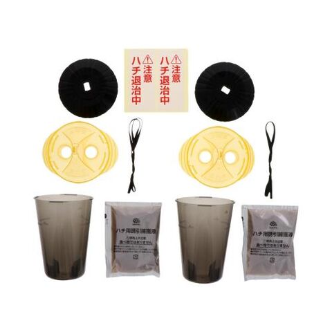 ■セット内容:フタ×2、屋根×2、誘引捕獲液×2、下容器×2、吊り下げひも×2、注意喚起シール×2