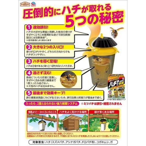 ■対象害虫:ハチ(スズメバチ、アシナガバチ、ドロバチ等)、コガネムシ、ガ ※ ミツバチは誘引・捕獲されません。