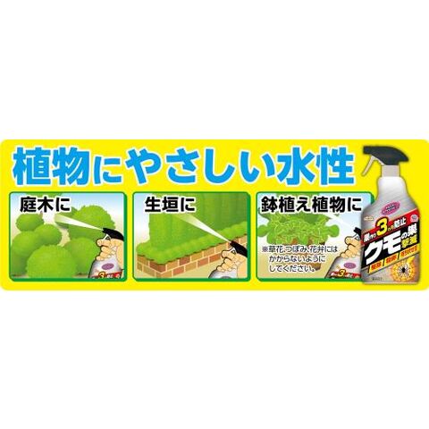 ■容量:1000ml■原産国:日本■有効成分:ビフェントリン、d-T80-フタルスリン(ピレスロイド系)■効果持続期間:クモの巣作り予防に使用する場合、約3ヵ月持続(自社試験。使用環境により異なります。)