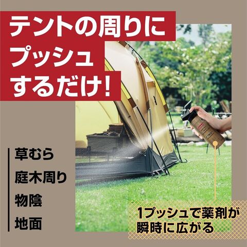 ◆テント周りに噴射して飛んでいる蚊や草むらに潜む蚊をよせつけない!