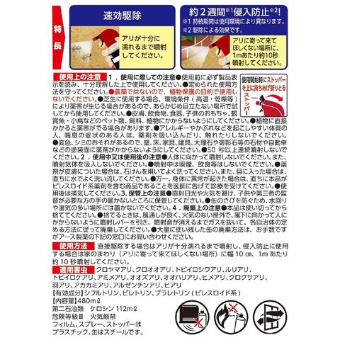 ■対象害虫:クロヤマアリ、クロオオアリ、トビイロシワアリ、ルリアリ、トビイロケアリ、アミメアリ、オオズアリ、オオハリアリ、ヒメアリ、クロクサアリ、羽アリ、アカカミアリ、アルゼンチンアリ、ヒアリ