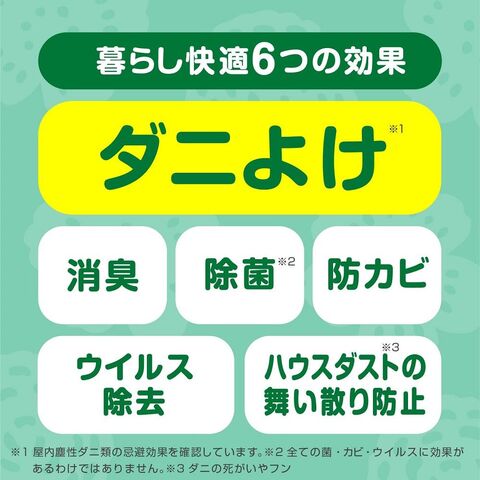 ◆ダニよけ・消臭・除菌・防カビ・ウイルス除去(※1)・ハウスダスト除去成分配合(※2)の6つの特長。