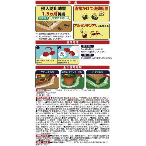 ■対象害虫:クロアリ、アカアリ、アルゼンチンアリ、ヒアリなどのアリ類