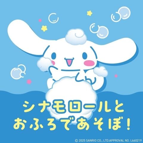 ◆ふわふわの泡をこねてシナモロールのくるくるのしっぽを作ったり、湯面に描いて楽しむことができます。