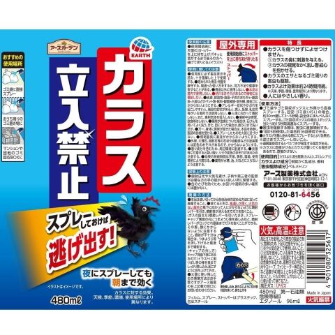 アース製薬 アースガーデン カラス立入禁止 スプレー 480ml EGカラスタチイリキンシスプレ-480 【返品種別A】