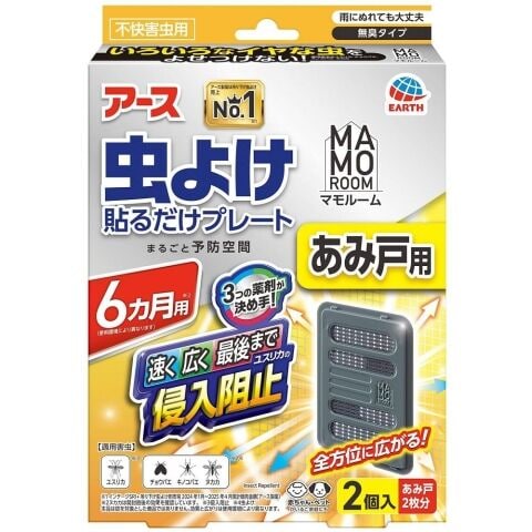 アース製薬 マモルーム 虫よけ貼るだけプレート あみ戸用 6ヵ月用 マモル-ムムシヨケハルPアミド6 【返品種別A】