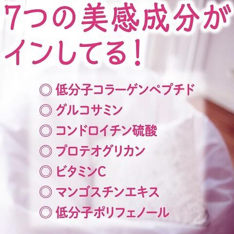 ■原材料名:フィッシュコラーゲンペプチド(ゼラチンを含む、中国製造)、果汁(ブルーベリー、カシス、アサイー)、エリスリトール、鮫軟骨抽出物、N-アセチルグルコサミン、マンゴスチン抽出エキス粉末、サケ鼻軟骨抽出物(さけを含む)、ライチポリフェノール加工品 / ゲル化剤(増粘多糖類)、酸味料、香料、ビタミンC、甘味料(アセスルファムK、スクラロース)、チャ抽出物