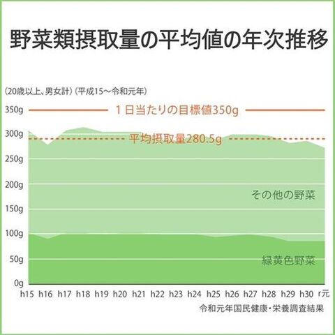 (※)主栄養成分(独自基準)とは、ビタミンC、β-カロテン、カルシウム、マグネシウム、カリウム「令和元年国民健康・栄養調査」から算出