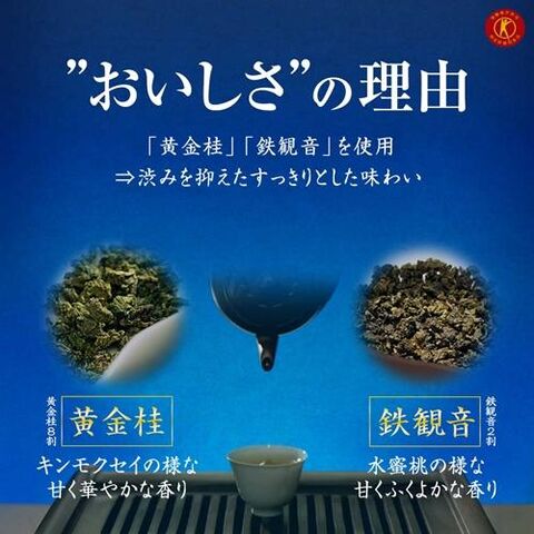 ◆キンモクセイのような香りが特長の黄金桂に、白桃を思わせる甘い香りが特長の鉄観音をブレンドし、優雅な香りとすっきりとした味わいに仕上げました。
