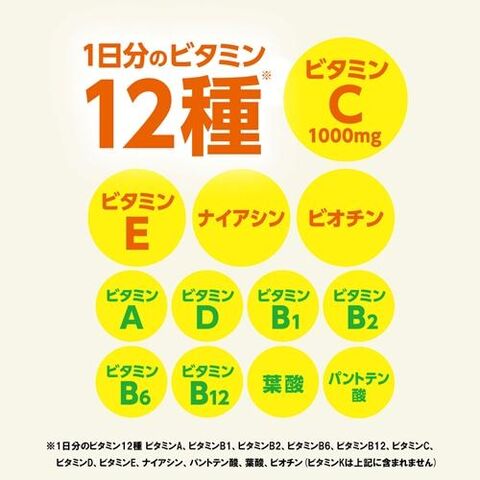 (※2)ビタミンC、ビタミンA、ビタミンE、ビタミンD、ビタミンB1、ビタミンB2、ビタミンB6、ビタミンB12、ナイアシン、葉酸、パントテン酸、ビオチン