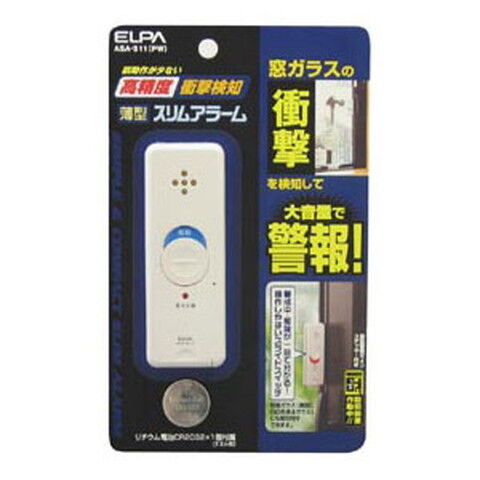 ELPA 薄型スリムアラーム 衝撃検知 パールホワイト ASA-S11(PW) 【返品種別A】
