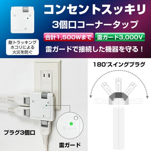 ELPA 耐雷サージ サイドコーナータップ(3個口) A-361SB(W) 【返品種別A】のレビュー
