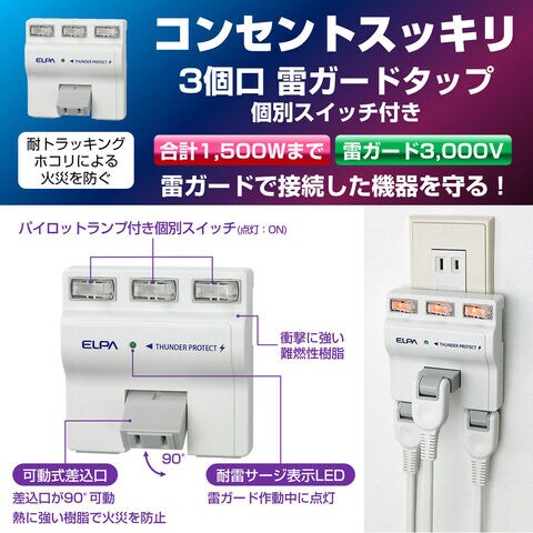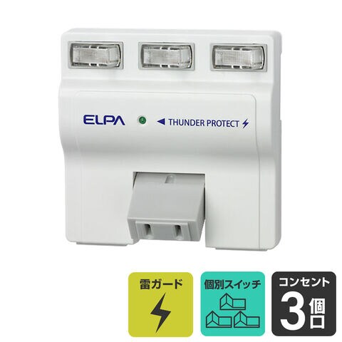 ELPA 耐雷サージ 独立スイッチ付タップ(3個口) A-S500B(W) 【返品種別A】