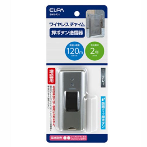 ELPA ワイヤレスチャイム押ボタン送信器(グレー) EWS-P31 【返品種別A】