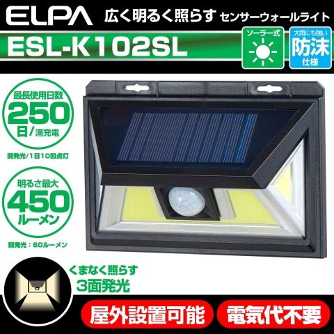 ELPA ソーラー充電式 LEDセンサーウォールライト(ソーラー発電式) ESL-K102SL 【返品種別A】