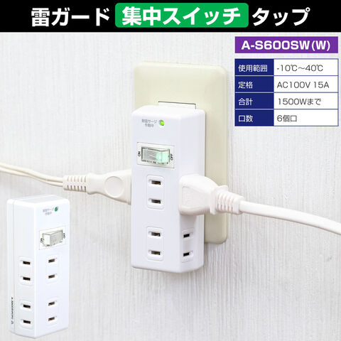 ELPA 耐雷サージ集中スイッチ付6個口タップ A-S600SW(W) 【返品種別A】