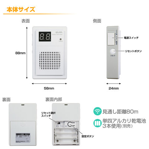 一般家庭や店舗・事務所における呼び出しや報知用に最適です。
