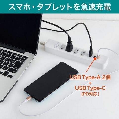 ・PD(パワーデリバリー)対応スマートフォン、タブレット等を超速充電できます。※