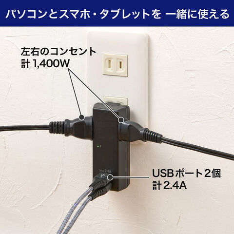 ◆スマートフォンを2台同時充電可能! (USBポート)