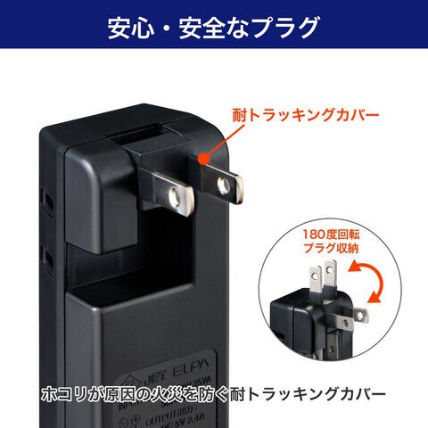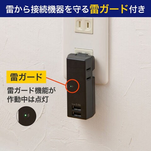 ELPA 耐雷 USBタップ(2個口+2ポート、2.4A) ブラック ELPA UA-222SB(BK) 【返品種別A】