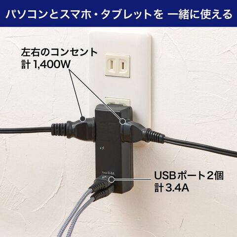 ◆スマートフォンとタブレットを2台同時充電可能! (USBポート)