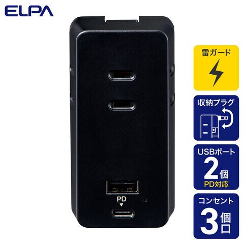 ELPA USBタップ(3個口+USB2ポート) ブラック UC-322SB(BK) 【返品種別A】