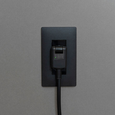プラグの刃を2本同時に差し込まないと扉が開かない安全設計です。